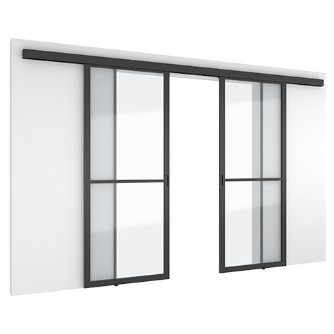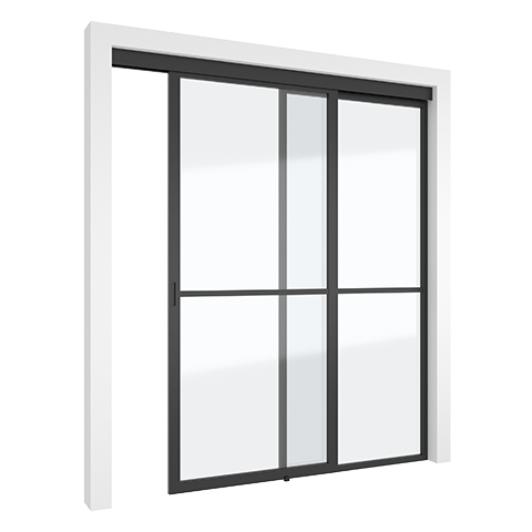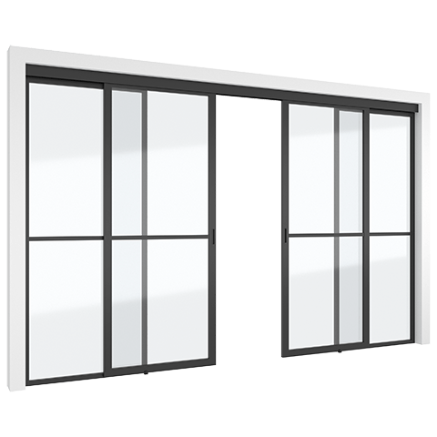 Elegant sliding door system made with a minimal anodised aluminium frame.